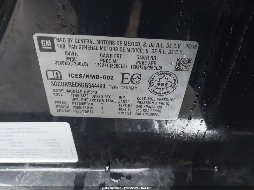 Колір ЧорнийЦиліндри 8Привід Повний привідVIN 3GCUKREC6GG344490Стан Заводиться та їде (перевірено)Ушкодження Перекидання