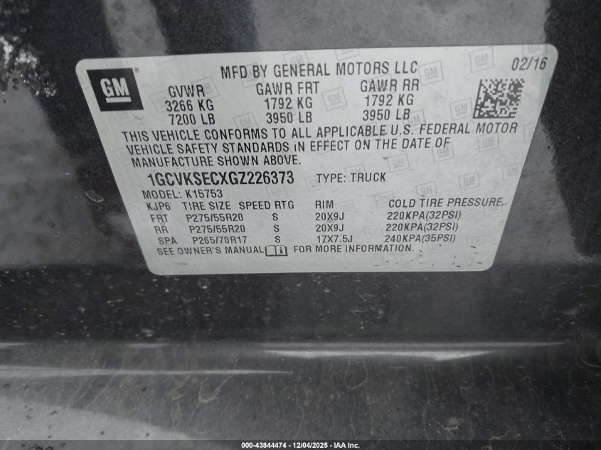 2016 CHEVROLET SILVERADO 1500 2016 року Бензин, 5.3, Повний привід, vin - 1GCVKSECXGZ226373 з США