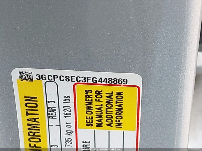 Колір СірийЦиліндри 8VIN 3GCPCSEC3FG448869Стан СтаціонарноУшкодження Передня або задня