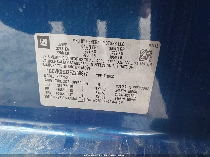 2015 CHEVROLET SILVERADO 1500 2015 року Бензин, 6.2, Повний привід, vin - 1GCVKSEJ3FZ238877 з США