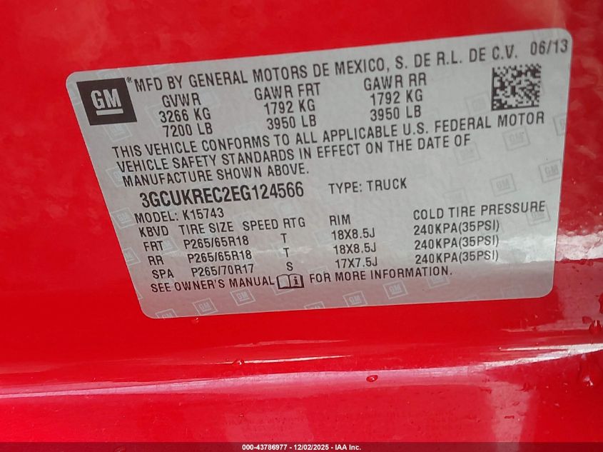 Колір ЧервонийЦиліндри 8Привід Повний привідVIN 3GCUKREC2EG124566Стан Заводиться та їде (перевірено)Ушкодження Передня або задня