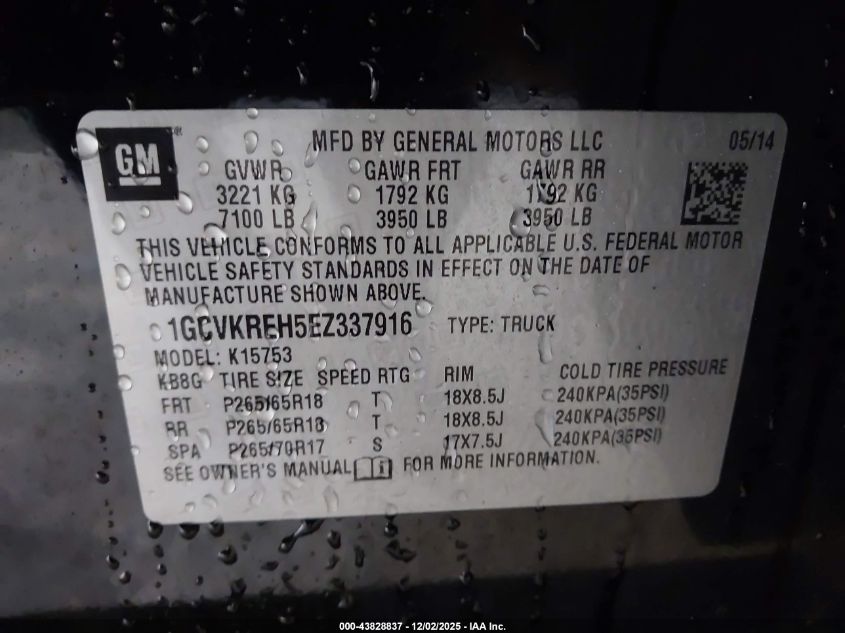 2014 CHEVROLET SILVERADO 1500 2014 року Бензин, 4.3, Повний привід, vin - 1GCVKREH5EZ337916 з США