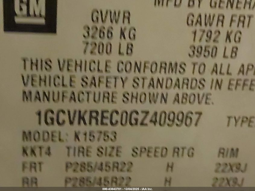 Колір ЧорнийЦиліндри 8Привід Повний привідVIN 1GCVKREC0GZ409967Стан Заводиться та їде (перевірено)Ушкодження Права сторона