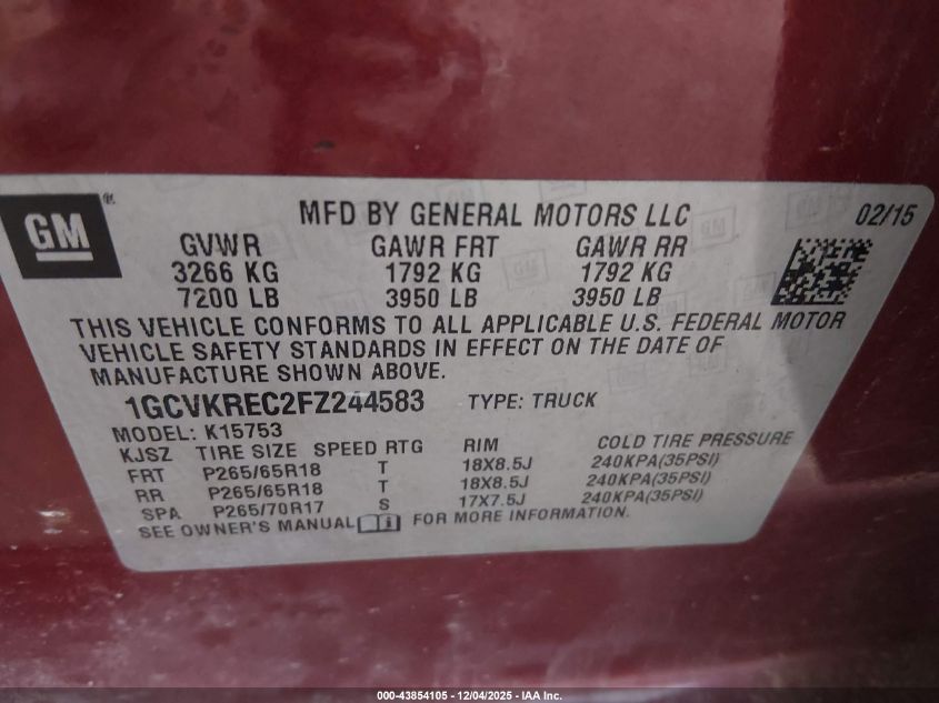 2015 CHEVROLET SILVERADO 1500 2015 року Бензин, 5.3, Повний привід, vin - 1GCVKREC2FZ244583 з США