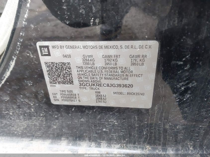 2018 CHEVROLET SILVERADO 1500 2018 року Бензин, 5.3, Повний привід, vin - 3GCUKREC8JG393620 з США