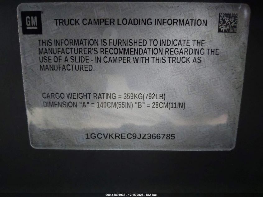 2018 CHEVROLET SILVERADO 1500 2018 року Бензин, 5.3, Повний привід, vin - 1GCVKREC9JZ366785 з США