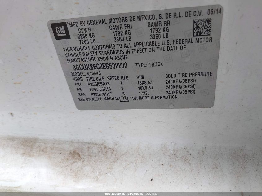 2014 CHEVROLET SILVERADO 1500 2014 року Бензин, 5.3, Повний привід, vin - 3GCUKSEC0EG502200 з США