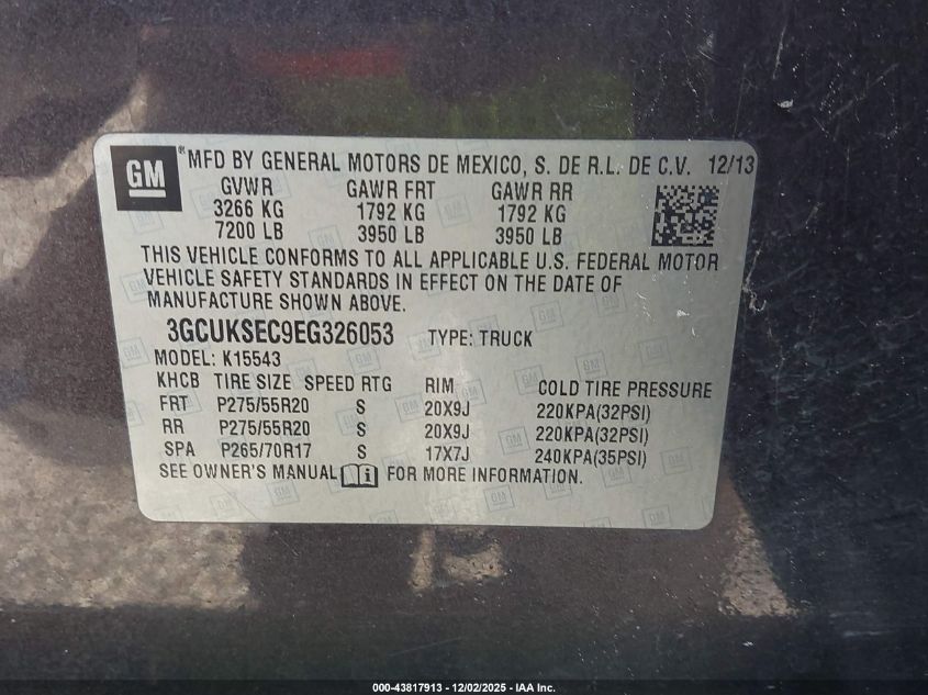2014 CHEVROLET SILVERADO 1500 2014 року Бензин, 5.3, Повний привід, vin - 3GCUKSEC9EG326053 з США