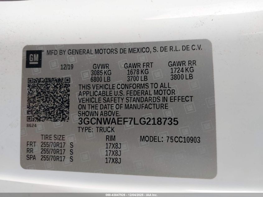 Колір БілийЦиліндри 8VIN 3GCNWAEF7LG218735Стан Заводиться та їде (перевірено)Ушкодження Права сторона