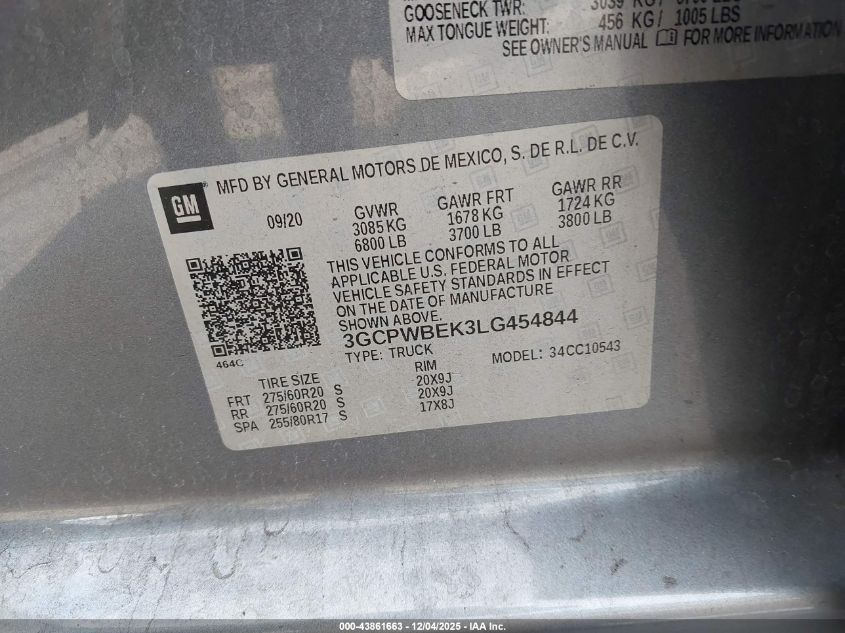 2020 CHEVROLET SILVERADO 1500 2020 року Бензин, 2.7, , vin - 3GCPWBEK3LG454844 з США