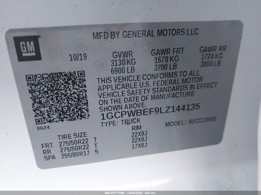 Колір БілийЦиліндри 8VIN 1GCPWBEF9LZ144135Стан Заводиться та їде (перевірено)Ушкодження Передня або задня