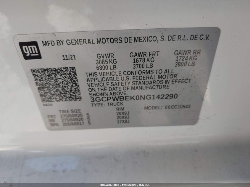 Колір БілийЦиліндри 4VIN 3GCPWBEK0NG142290Стан СтаціонарноУшкодження Передня або задня