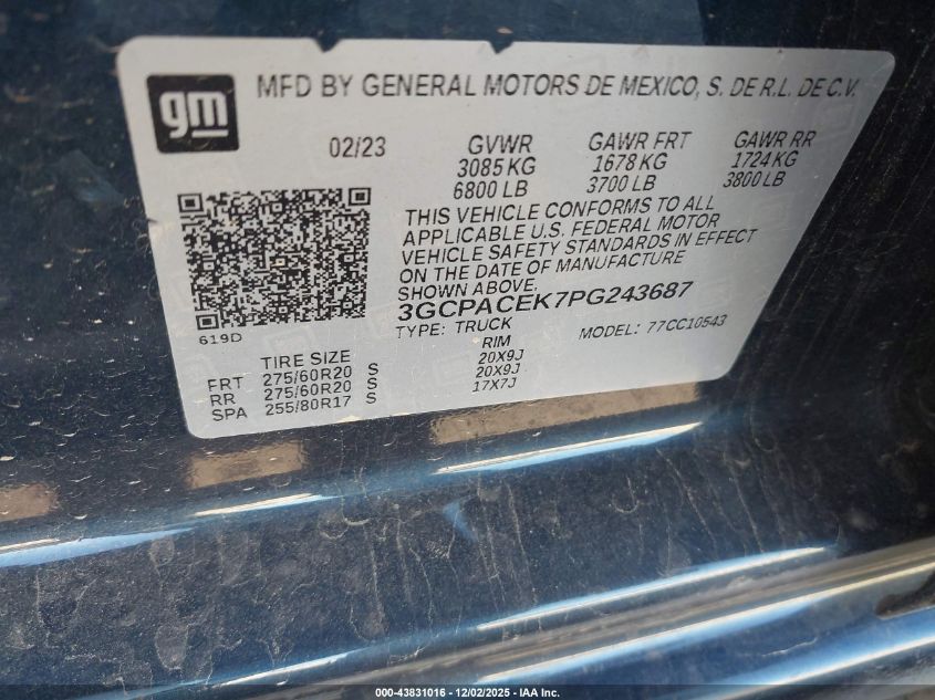 Колір СинійЦиліндри 4VIN 3GCPACEK7PG243687Стан Заводиться та їде (перевірено)Ушкодження Передня або задня