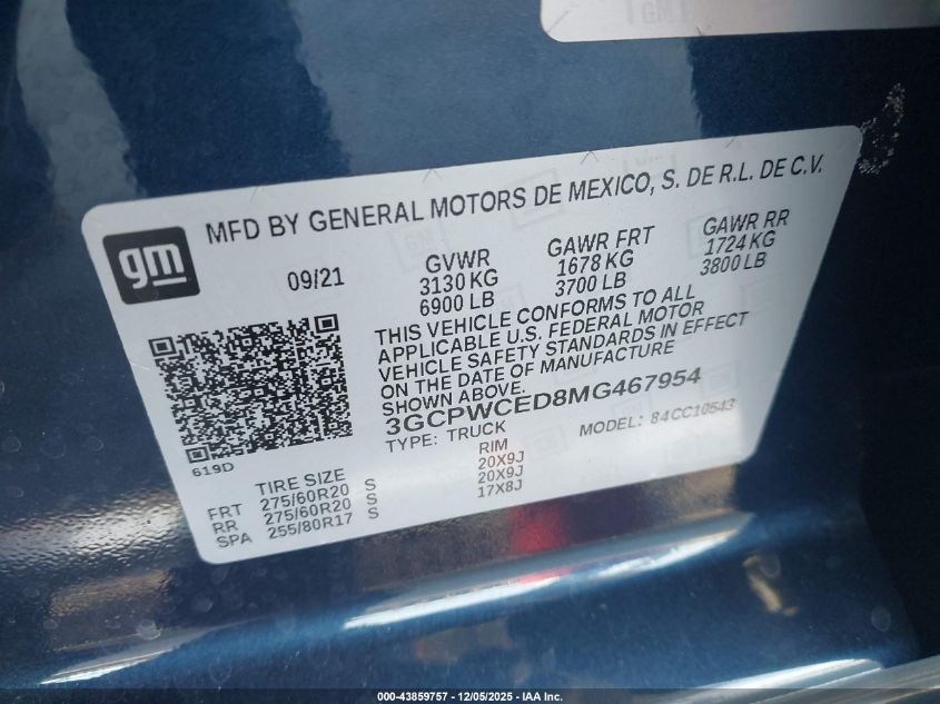 2021 CHEVROLET SILVERADO 1500 2021 року Бензин, 5.3, , vin - 3GCPWCED8MG467954 з США