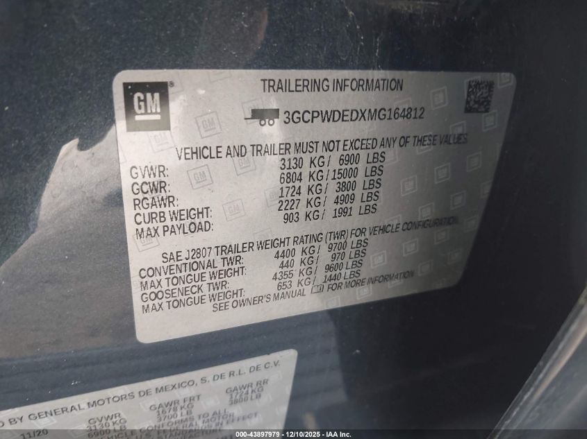 Колір СірийЦиліндри 8VIN 3GCPWDEDXMG164812Стан СтаціонарноУшкодження Ліва сторона