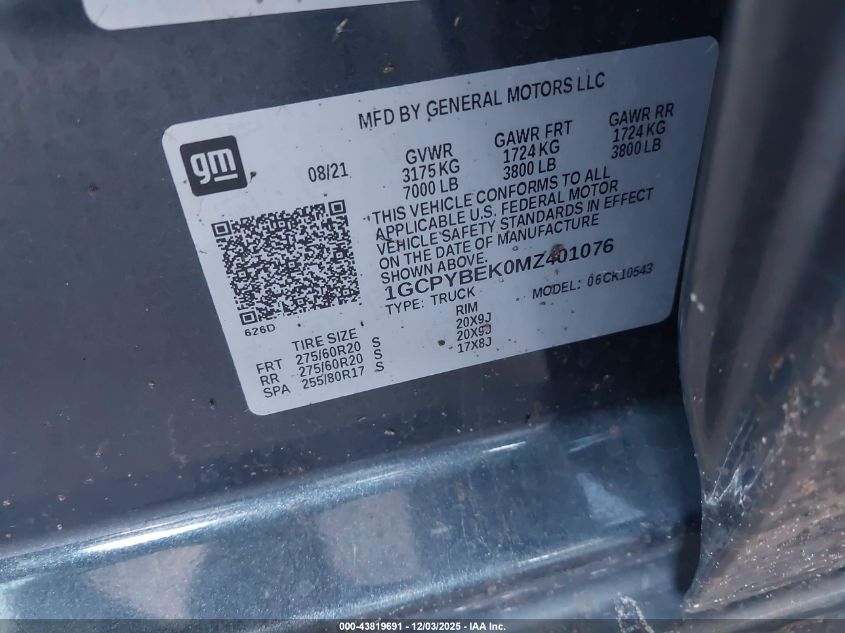 Колір СірийЦиліндри 4Привід Повний привідVIN 1GCPYBEK0MZ401076Стан ЗаводитьсяУшкодження Передня ліва