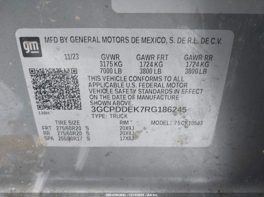 2024 CHEVROLET SILVERADO 1500 2024 року Бензин, 2.7, Повний привід, vin - 3GCPDDEK7RG186245 з США