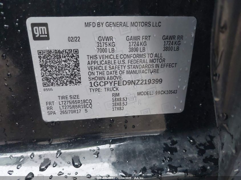 2022 CHEVROLET SILVERADO 1500 2022 року Бензин, 5.3, Повний привід, vin - 1GCPYFED9NZ219399 з США