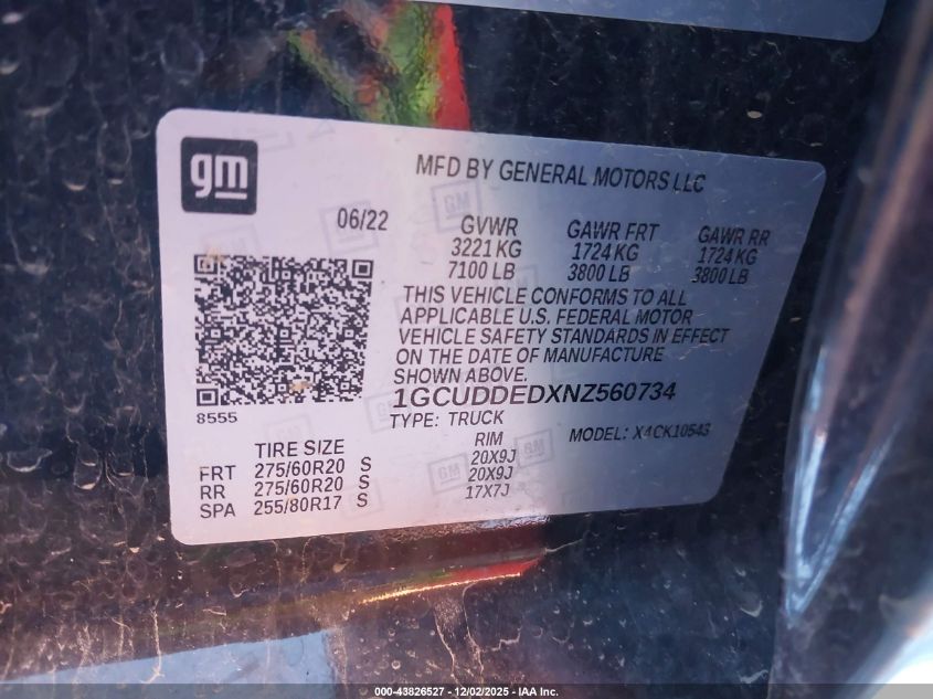 2022 CHEVROLET SILVERADO 1500 2022 року Бензин, 5.3, Повний привід, vin - 1GCUDDEDXNZ560734 з США