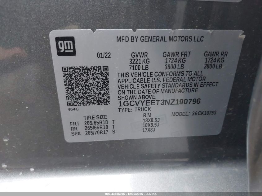 2022 CHEVROLET SILVERADO 1500 2022 року Дизель, 3.0, Повний привід, vin - 1GCVYEET3NZ190796 з США