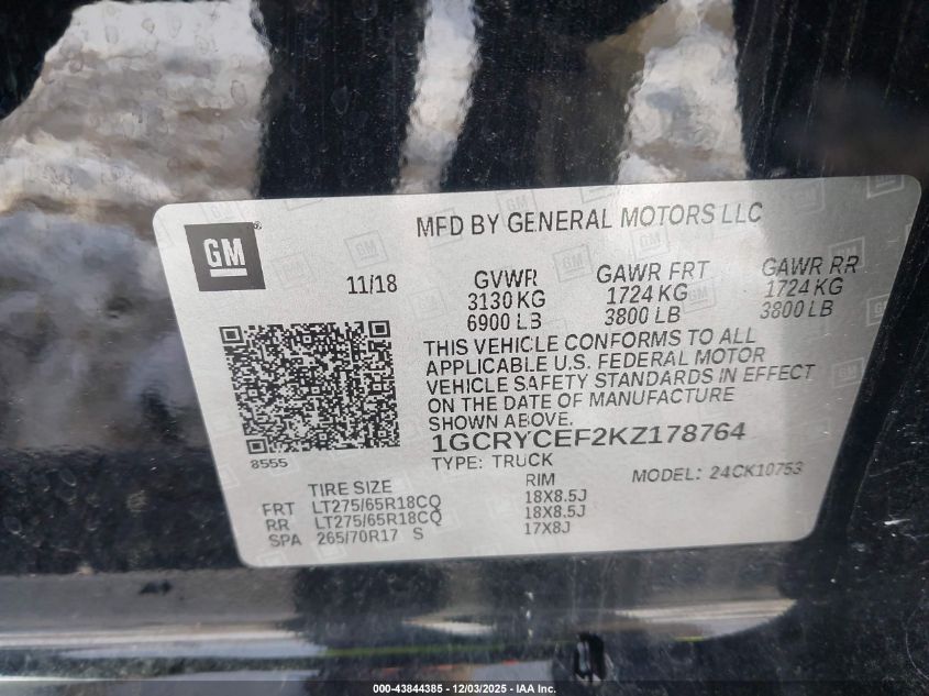 2019 CHEVROLET SILVERADO 1500 2019 року Бензин, 5.3, Повний привід, vin - 1GCRYCEF2KZ178764 з США