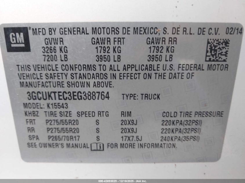 Колір БілийЦиліндри 8Привід Повний привідVIN 3GCUKTEC3EG388764Стан СтаціонарноУшкодження Передня і задня