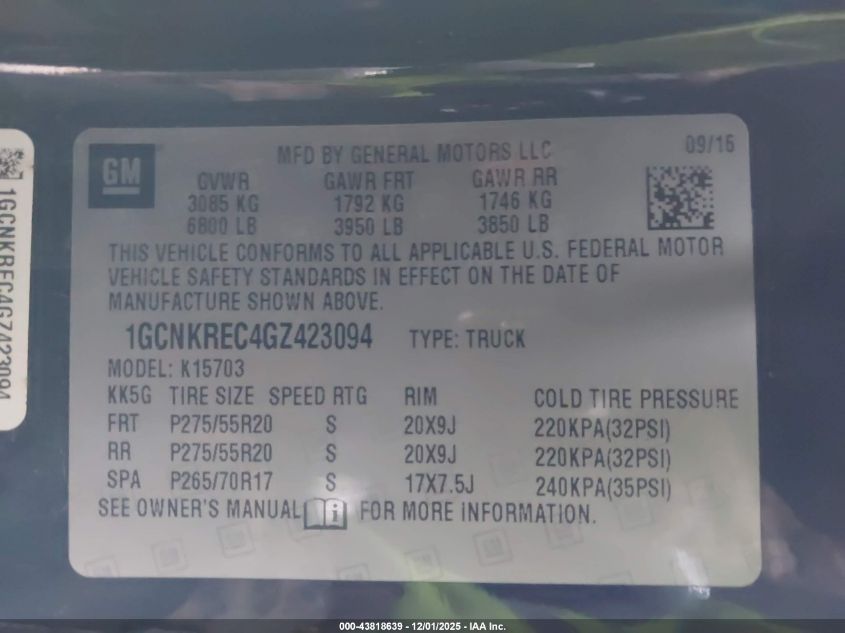 Колір ЧорнийЦиліндри 8Привід Повний привідVIN 1GCNKREC4GZ423094Стан Заводиться та їде (перевірено)Ушкодження Задня ліва