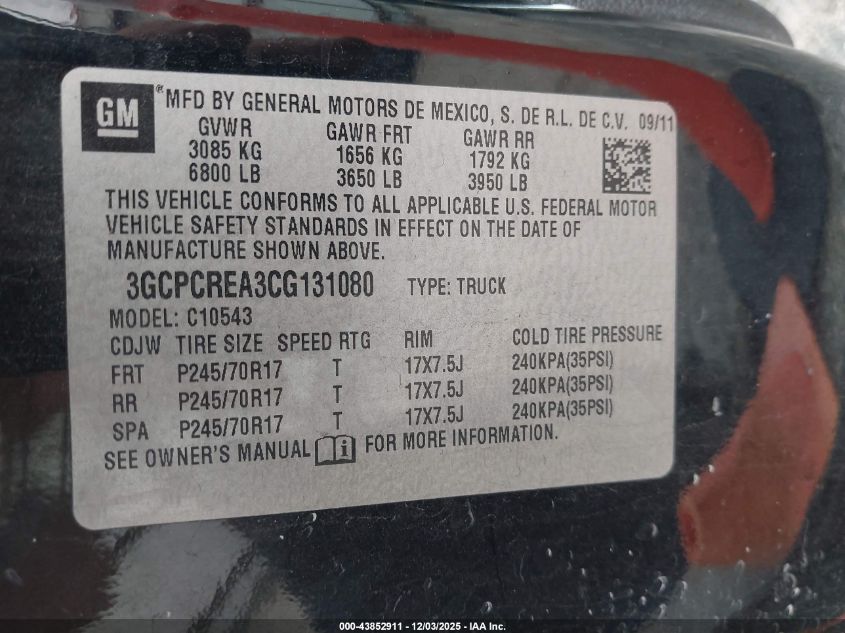 Колір ЧорнийЦиліндри 8VIN 3GCPCREA3CG131080Стан СтаціонарноУшкодження Передня ліва