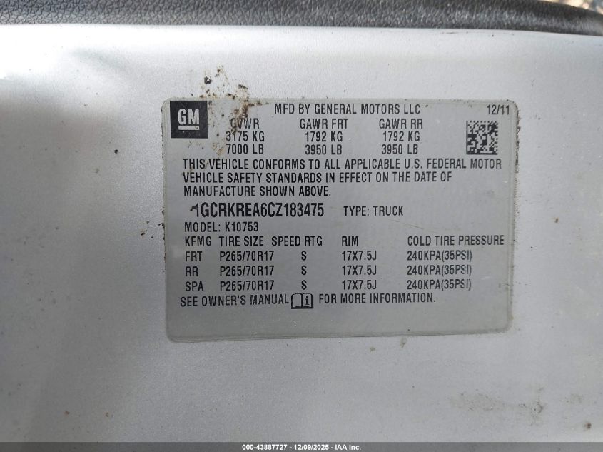 Колір СрібнийЦиліндри 8Привід Повний привідVIN 1GCRKREA6CZ183475Стан СтаціонарноУшкодження Перекидання