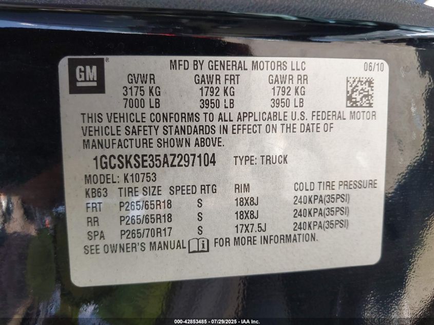 2010 CHEVROLET SILVERADO 1500 2010 року Бензин, 5.3, Повний привід, vin - 1GCSKSE35AZ297104 з США