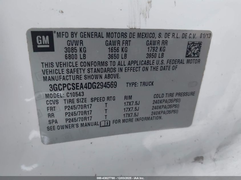 Колір БілийЦиліндри 8VIN 3GCPCSEA4DG294569Стан СтаціонарноУшкодження Передня і задня