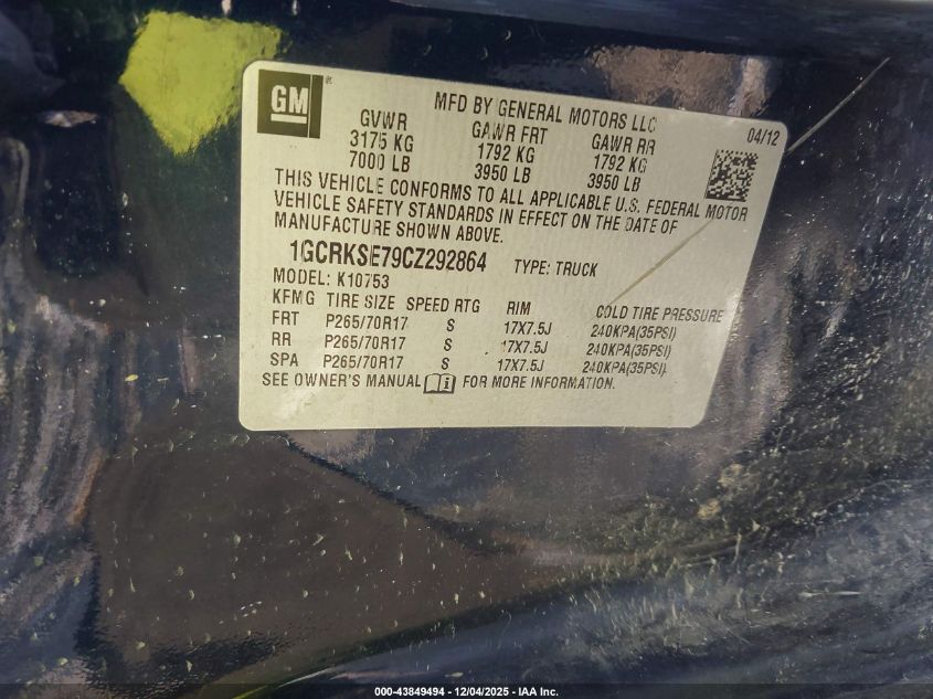 2012 CHEVROLET SILVERADO 1500 2012 року Бензин, 5.3, Повний привід, vin - 1GCRKSE79CZ292864 з США