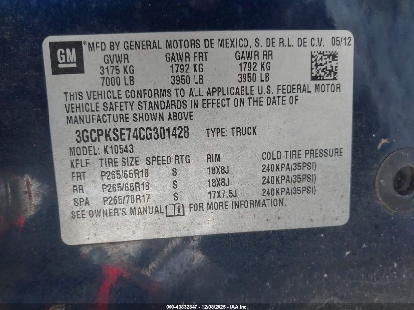 Колір СинійЦиліндри 8Привід Повний привідVIN 3GCPKSE74CG301428Стан Заводиться та їде (перевірено)Ушкодження З боків