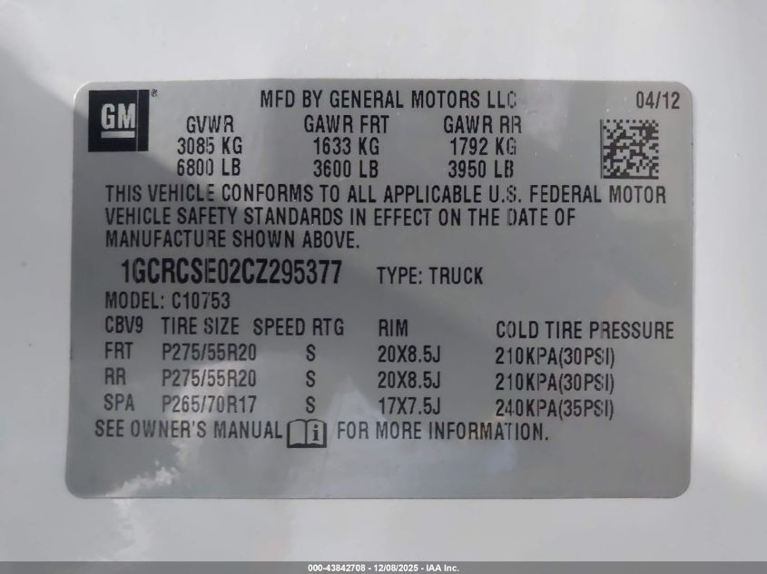 Колір БілийЦиліндри 8VIN 1GCRCSE02CZ295377Стан СтаціонарноУшкодження Передня або задня