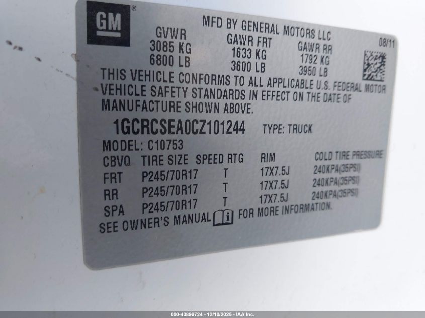 2012 CHEVROLET SILVERADO 1500 2012 року Бензин, 4.8, , vin - 1GCRCSEA0CZ101244 з США