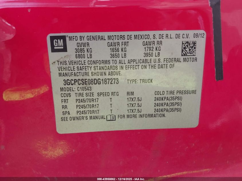 Колір ЧервонийЦиліндри 8VIN 3GCPCSE08DG187273Стан СтаціонарноУшкодження Ліва сторона