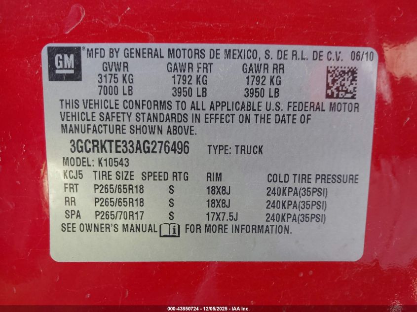 Колір ЧервонийЦиліндри 8Привід Повний привідVIN 3GCRKTE33AG276496Стан Заводиться та їде (перевірено)Ушкодження Передня або задня