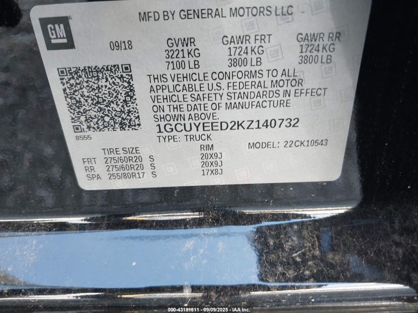 Колір ЧорнийЦиліндри 8Привід Повний привідVIN 1GCUYEED2KZ140732Стан ЗаводитьсяУшкодження Передня або задня