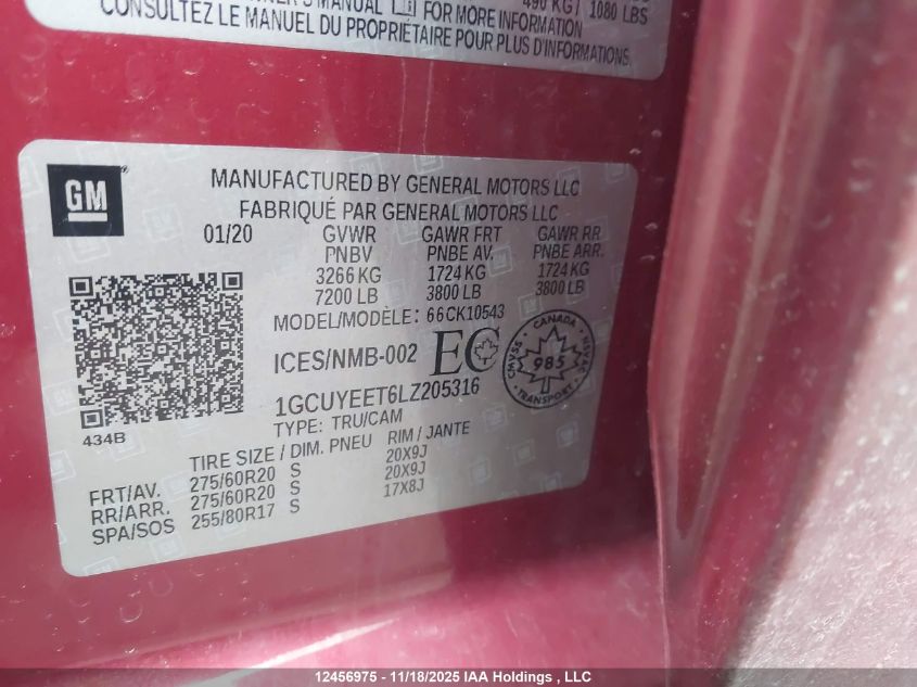2020 CHEVROLET SILVERADO 1500 2020 року Дизель, , Повний привід, vin - 1GCUYEET6LZ205316 з США