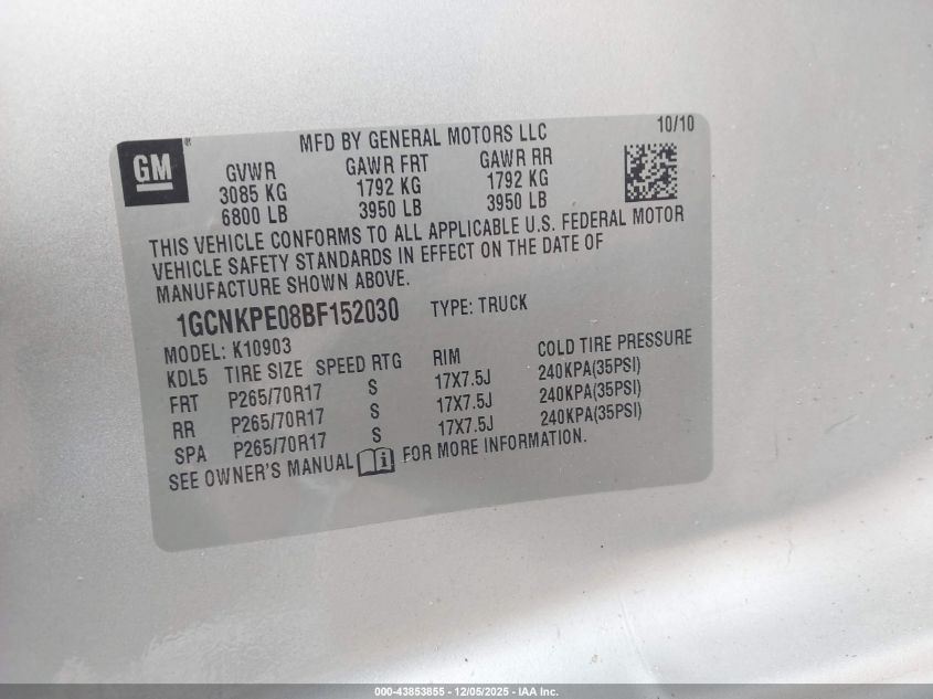 2011 CHEVROLET SILVERADO 1500 2011 року Бензин, 5.3, Повний привід, vin - 1GCNKPE08BF152030 з США