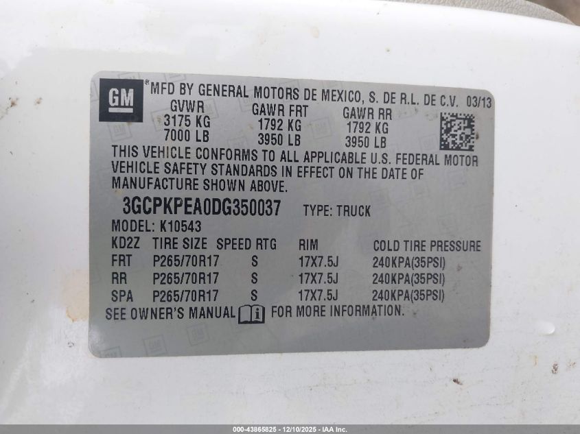 Колір БілийЦиліндри 8Привід Повний привідVIN 3GCPKPEA0DG350037Стан Заводиться та їде (перевірено)Ушкодження Передня або задня