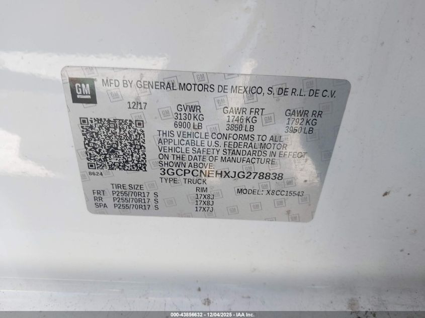 2018 CHEVROLET SILVERADO 1500 2018 року Бензин, 4.3, , vin - 3GCPCNEHXJG278838 з США