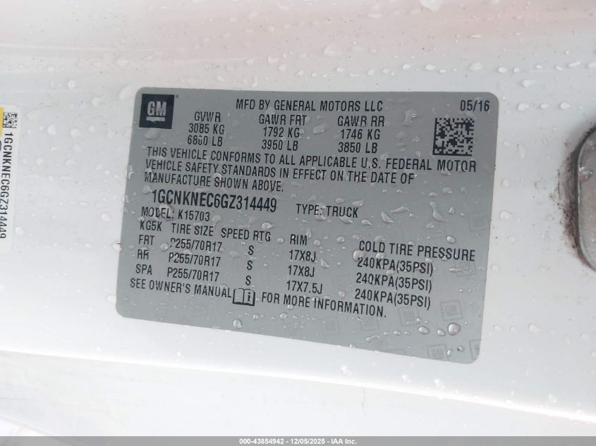 2016 CHEVROLET SILVERADO 1500 2016 року Бензин, 5.3, Повний привід, vin - 1GCNKNEC6GZ314449 з США