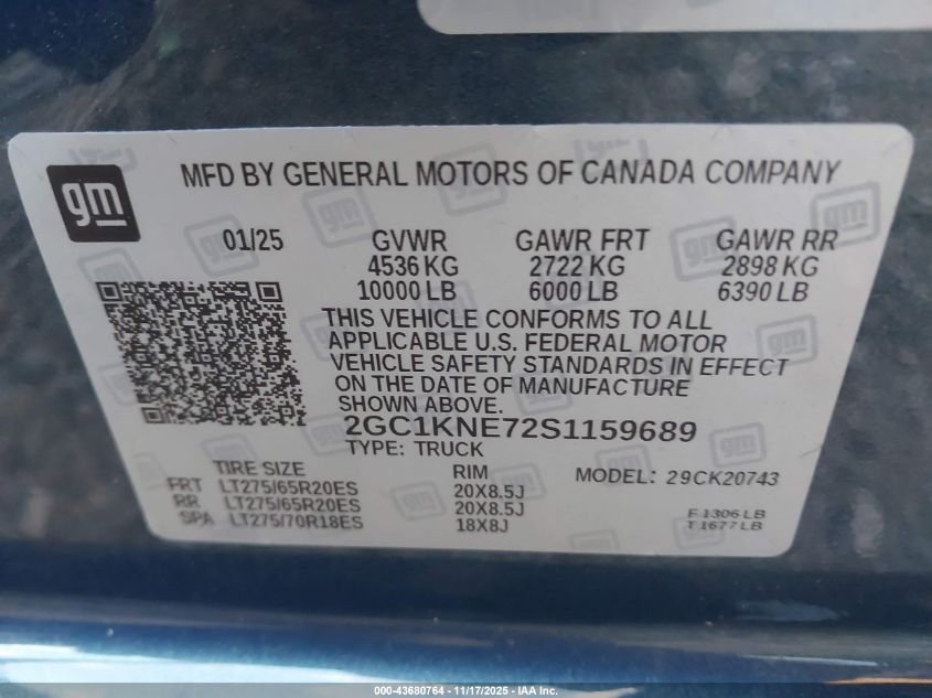 2025 CHEVROLET SILVERADO 2500 2025 року Бензин, 6.6, Повний привід, vin - 2GC1KNE72S1159689 з США