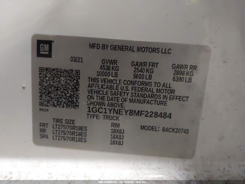 2021 CHEVROLET SILVERADO 2500 2021 року Дизель, 6.6, Повний привід, vin - 1GC1YNEY8MF228484 з США