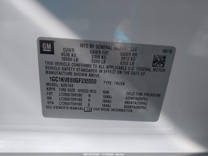 Колір БілийЦиліндри 8Привід Повний привідVIN 1GC1KVE80GF235550Стан Заводиться та їде (перевірено)Ушкодження Передня або задня