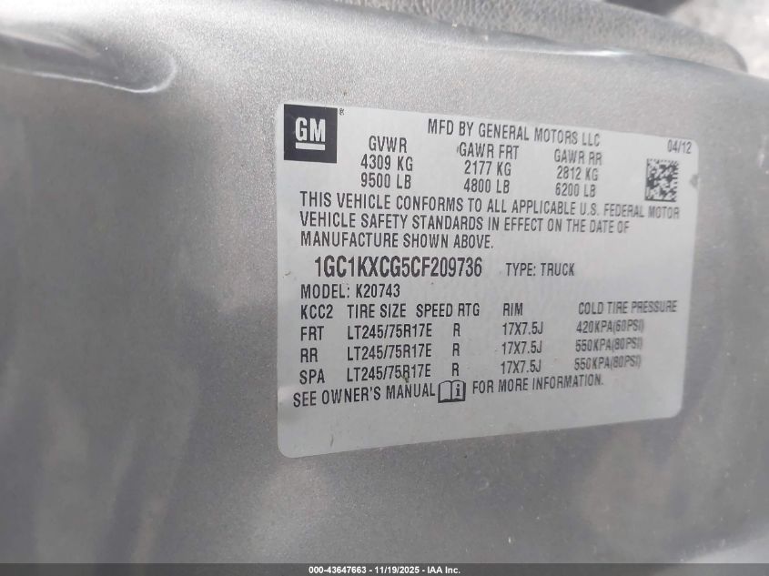 2012 CHEVROLET SILVERADO 2500 2012 року Бензин, 6.0, Повний привід, vin - 1gc1kxcg5cf209736 з США