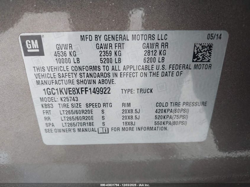 Колір КоричневийЦиліндри 8Привід Повний привідVIN 1GC1KVE8XFF149922Стан Заводиться та їде (перевірено)Ушкодження З боків