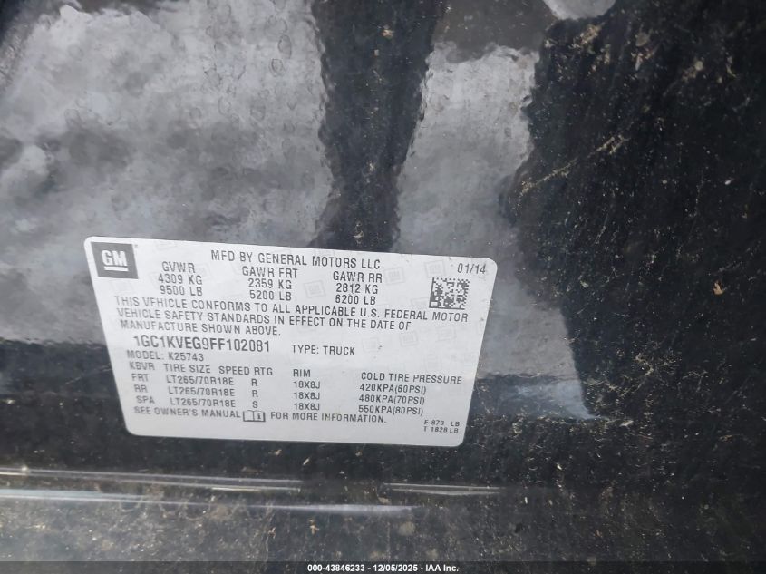 Колір ЧорнийЦиліндри 8Привід Повний привідVIN 1GC1KVEG9FF102081Стан СтаціонарноУшкодження Механічні пошкодження