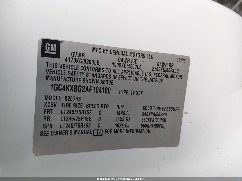 Колір БілийЦиліндри 8Привід Повний привідVIN 1GC4KXBG2AF104180Стан СтаціонарноУшкодження Передня або задня